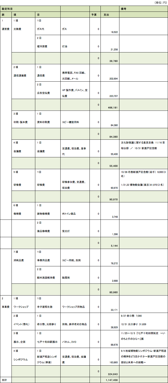 新渡戸記念館運営 会計報告